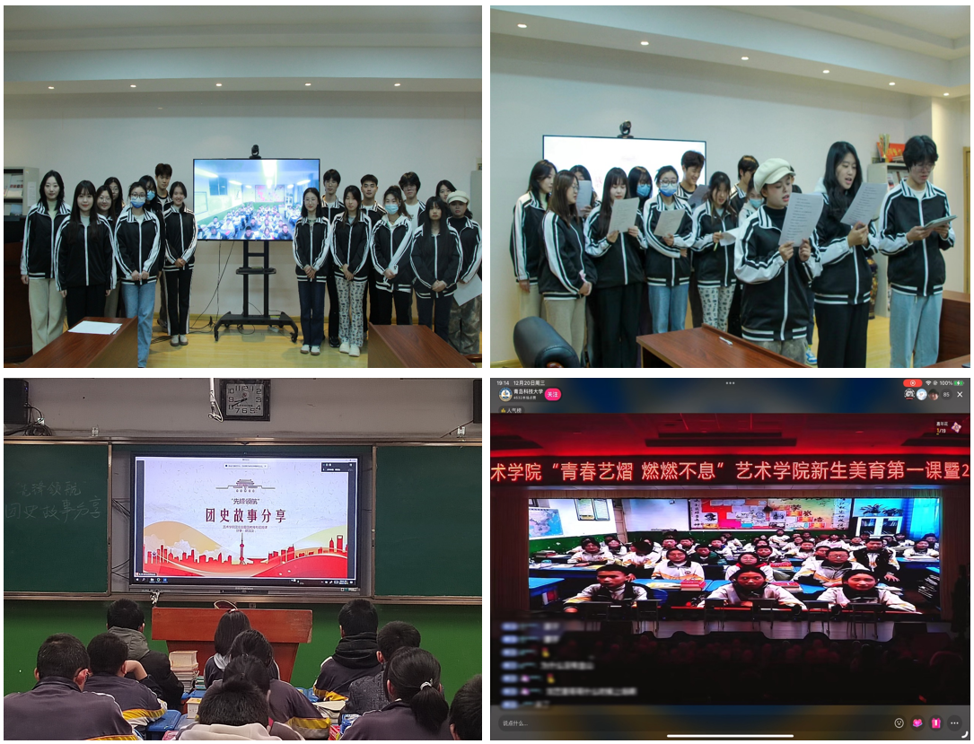 产品221、环艺223团支部通过开展云端“先锋领航”音乐团课,探索“思政+美育”机制,充分挖掘学院美育资源,用音乐向西部学子讲述优秀红色故事,歌颂革命先烈。同时发挥美育实践育人功能,结合学院2023年迎新晚会,带领学院青年与西部支教学子共唱《稻香》,激励青年学生练就过硬本领,投身强国伟业,始终与党和国家的发展同向同行。