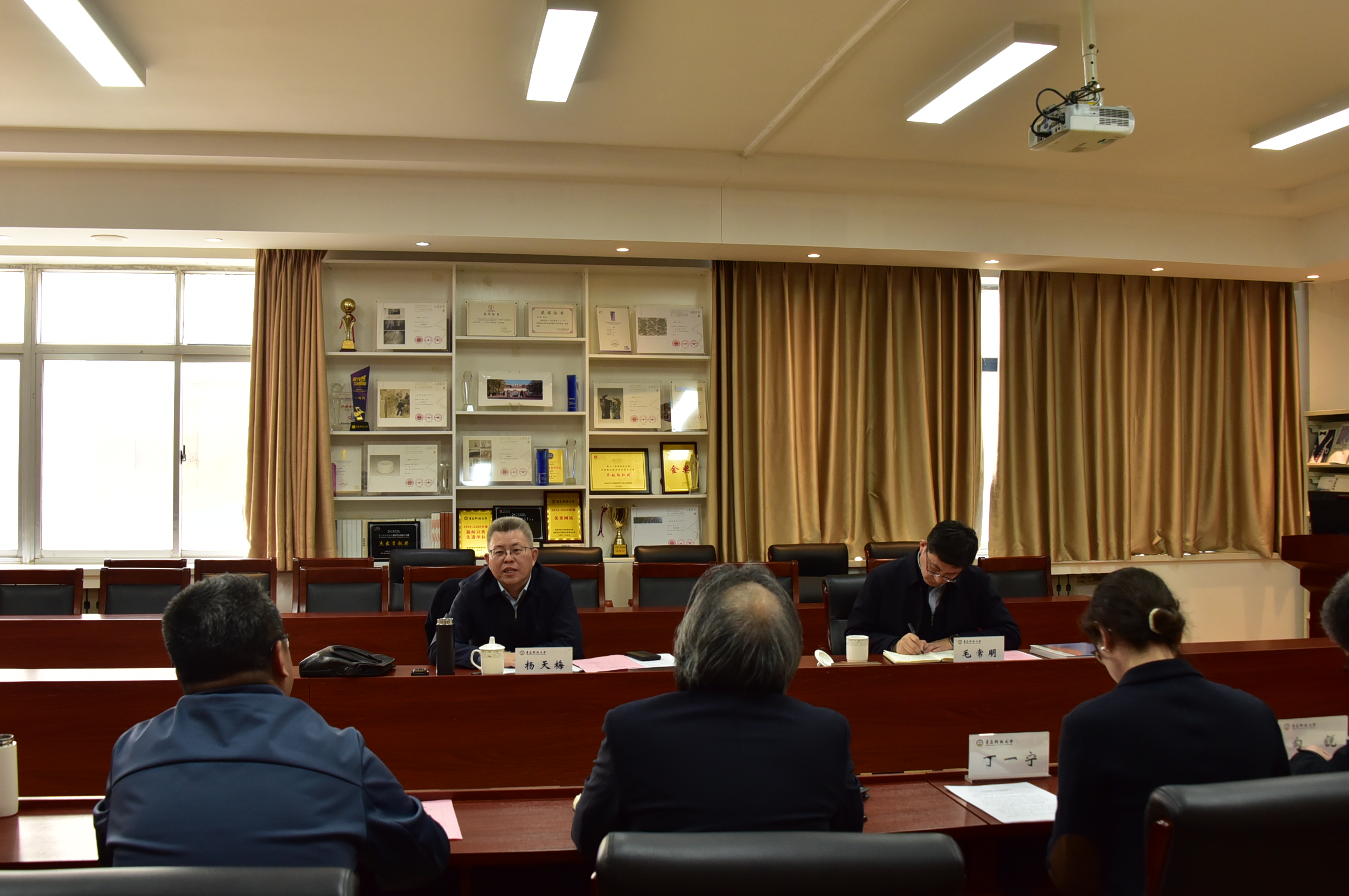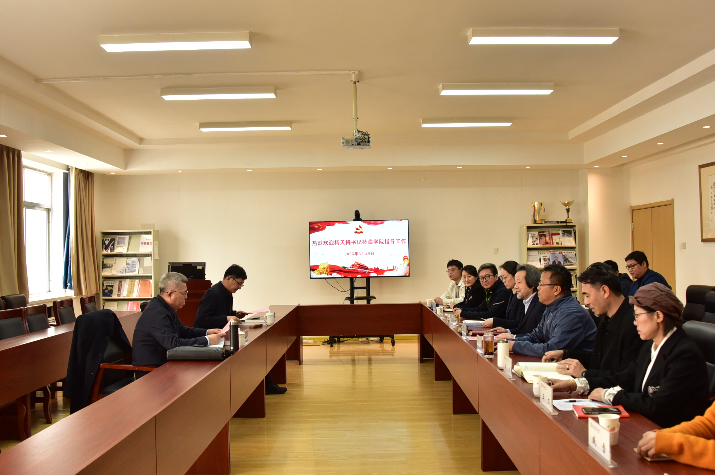 3月28日下午,学校党委书记杨天梅莅临学院调研指导工作,听取院长李宏文的工作汇报并与学院班子成员、骨干教师代表座谈交流。党委(校长)办公室主任毛常明陪同调研。