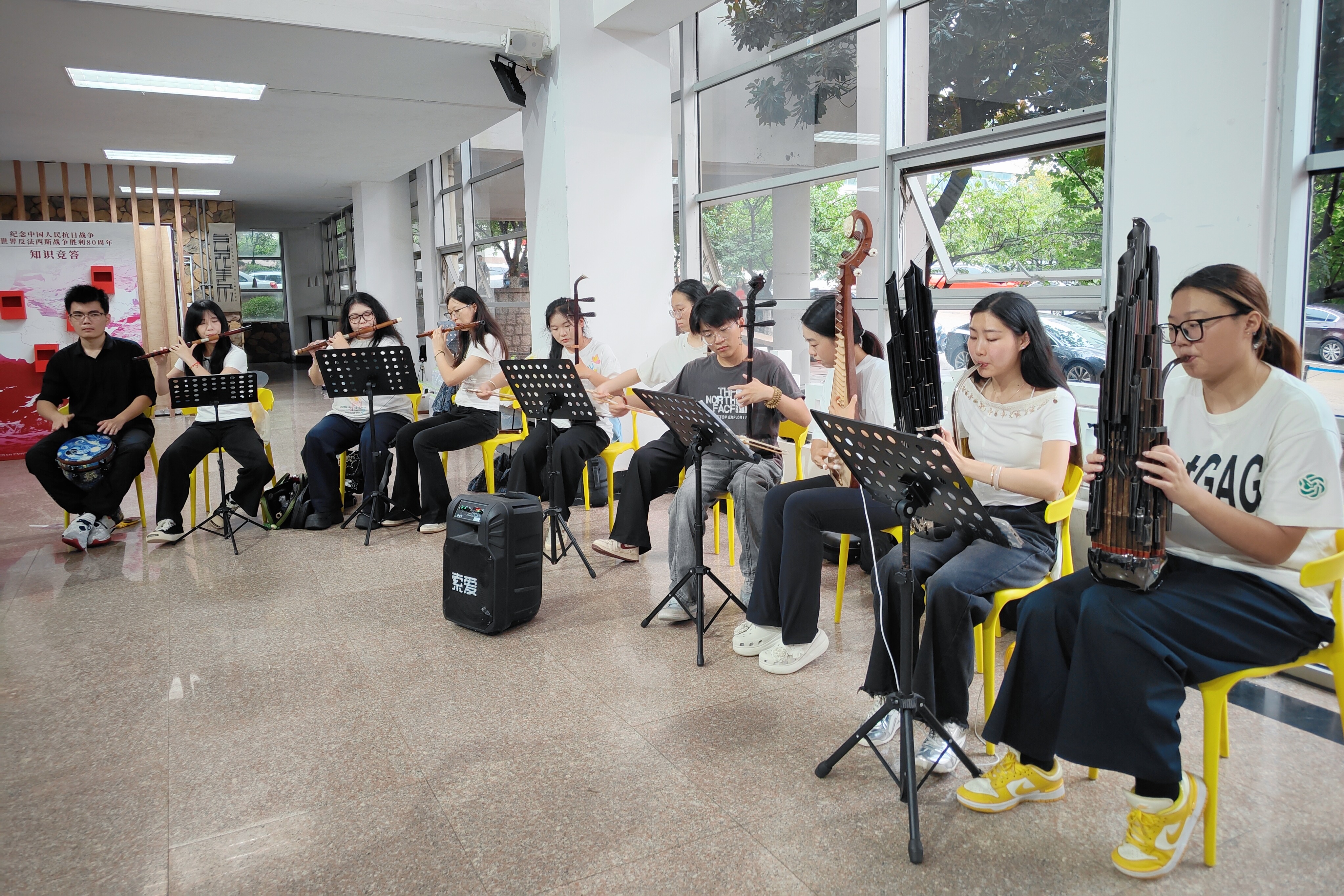 丝竹悠扬,乐动青春。由音乐专业学生组成的“迎新小乐团”现场奏响《青春校园》《兰亭序》等经典曲目,筝笛和鸣,丝竹婉转,成为迎新日中一道靓丽的艺术风景线。