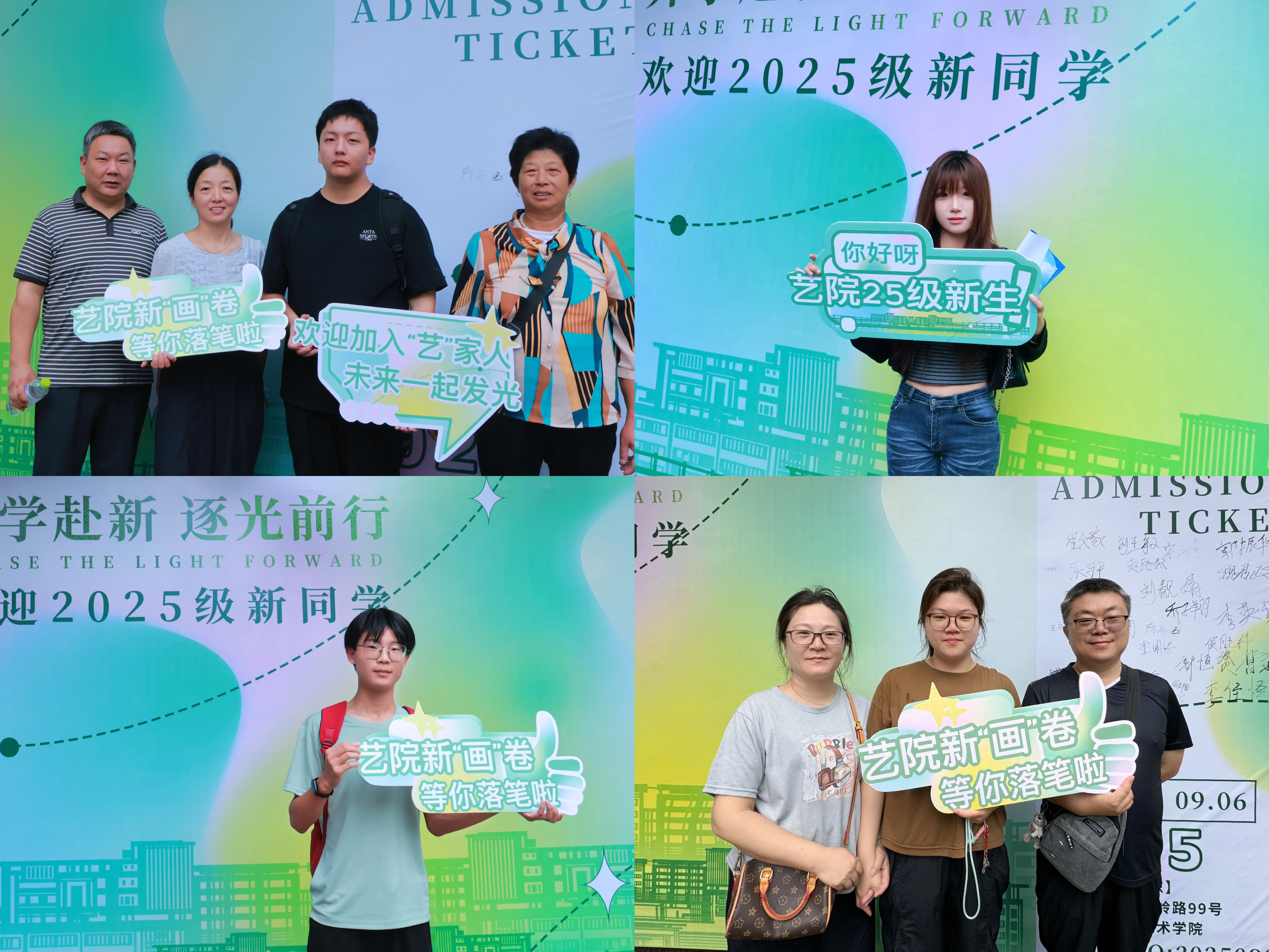 红色传承,厚植情怀。迎新现场设置了“中国人民抗日战争暨世界反法西斯战争胜利80周年”主题知识竞答区,面向新生开展爱国主义教育,进一步深化“艺术+思政“的融合。