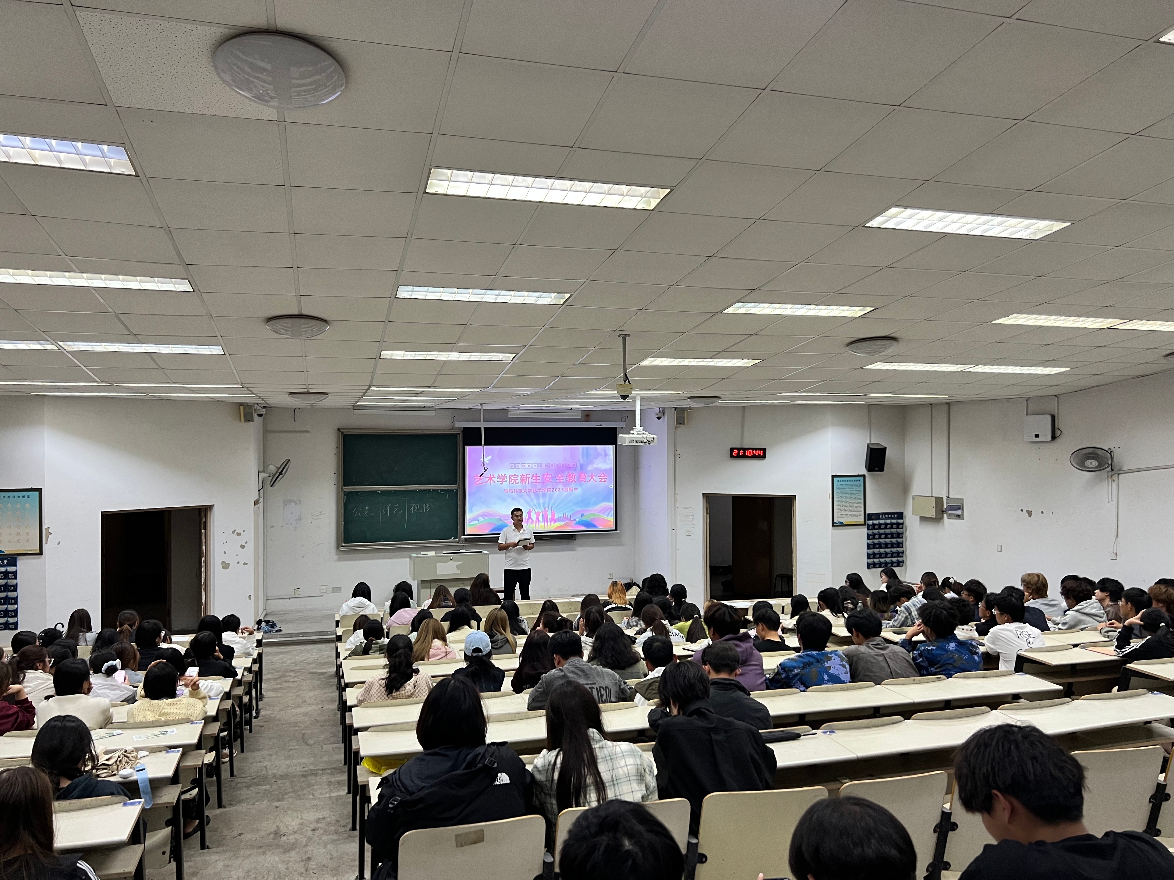 在弘毅E204召开2025级新生安全教育大会。学院学工办主任、辅导员、2025级全体新生参加会议。