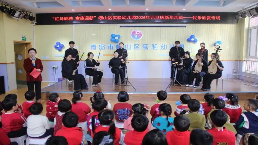 为响应团中央“百万大学生进社区”社会实践号召,发挥艺术专业优势,12月25日,学院“艺路同行”志愿服务队走进崂山区实验幼儿园,开展“红马驰骋·童趣迎新”民乐欣赏专场活动,以传统民乐之美为孩子们送上新年祝福,丰富幼儿传统文化体验。