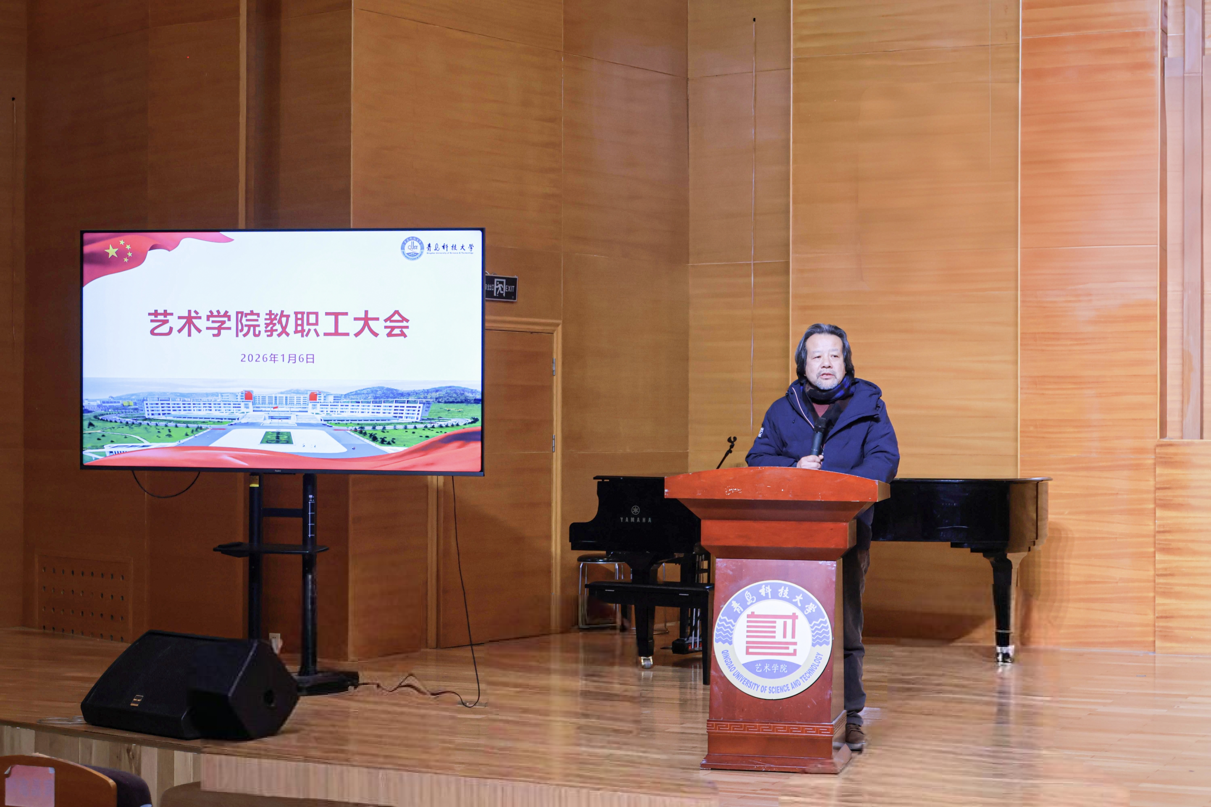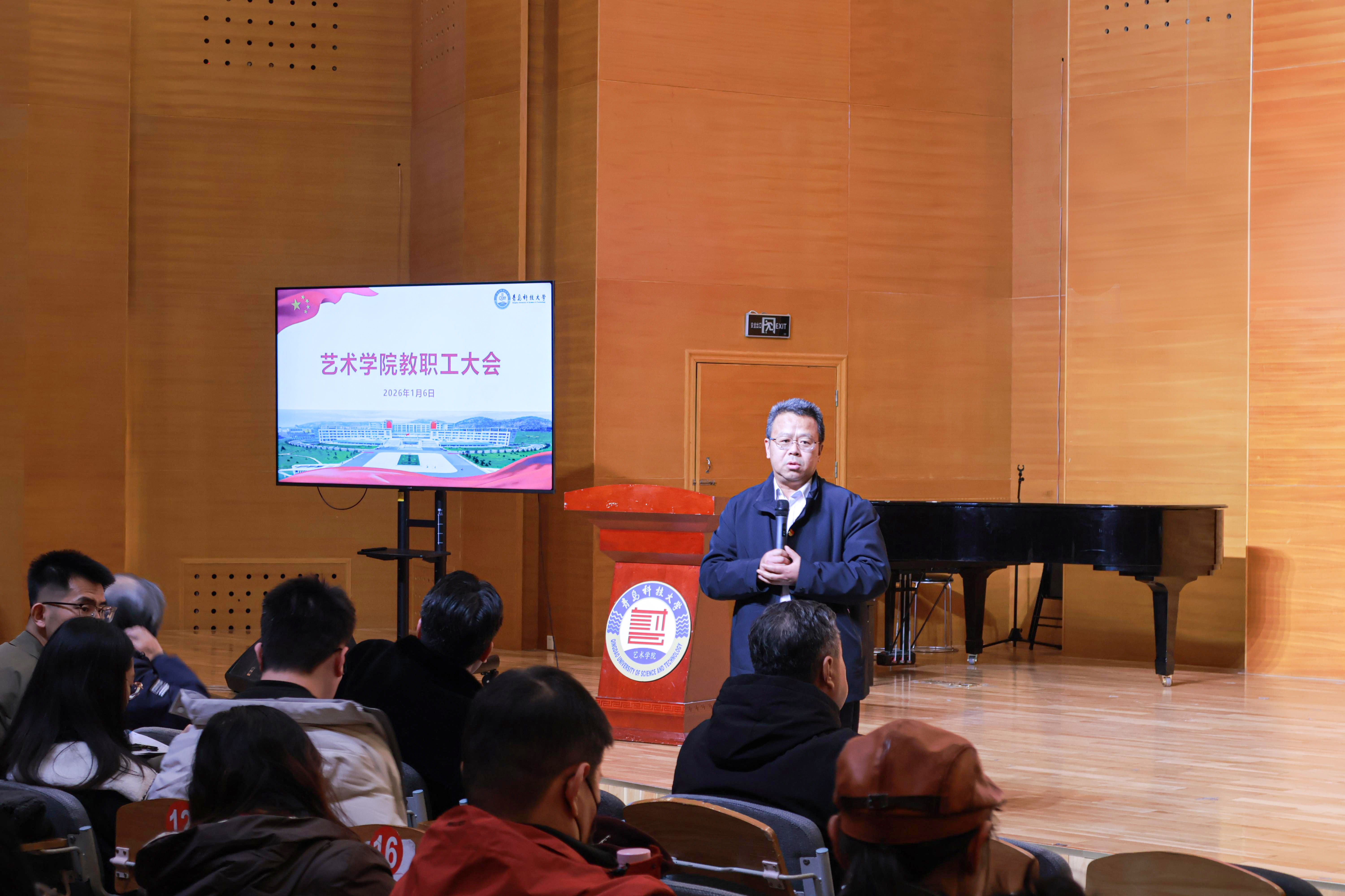 李宏文全面回顾了过去一年学院在学科专业发展、师资队伍建设、人才培养、科研创作、社会服务等方面取得的成绩,并对全体教职工的辛勤付出与团结协作表示衷心感谢。面对期末阶段,他要求全体教职工严谨、规范、按时完成各项教学收尾工作,确保本学期教学任务圆满收官。