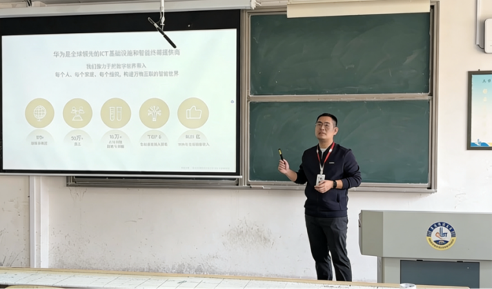 联合华为慧通公司,在弘毅楼B201举办2026届校园招聘宣讲会。本次宣讲会邀请华为惠通山东终端HRD吴欣佩、山东终端青岛区域零售经理高雅轩,学校2023届优秀毕业生彭颖担任主讲嘉宾。学院2026届毕业生辅导员张心凤、盛士峰,2026、2027届毕业生代表参会。