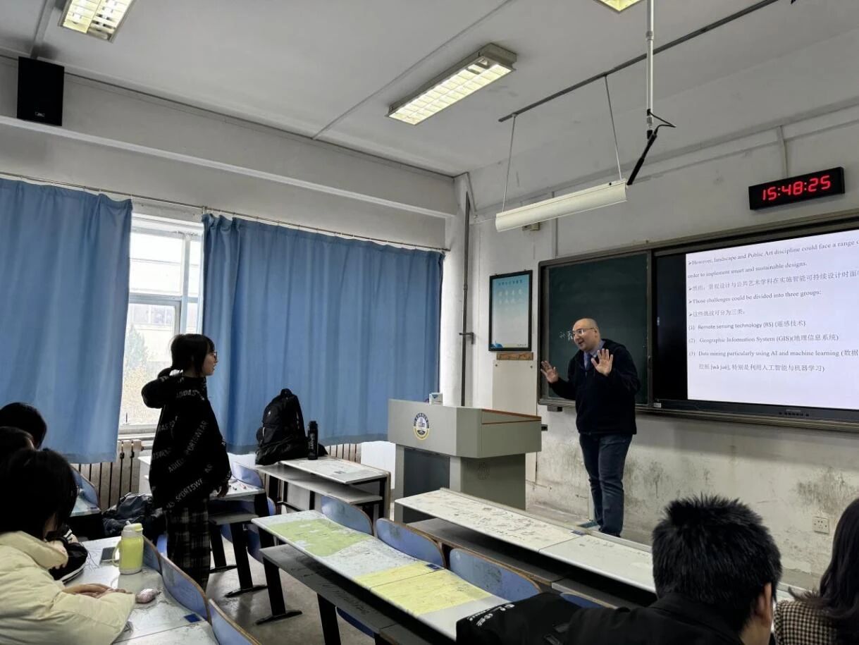 现场师生围绕地理设计的实践应用、跨学科融合路径等问题与阿米尔副教授展开深入交流。此次讲座不仅为师生系统解读了地理设计专业的核心内涵与发展方向,更推动了地理科学与设计学的交叉融合,为环境设计专业师生的学术研究与实践创新提供了全新思路与方向。