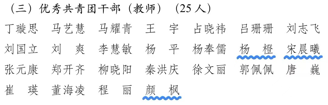 颜枫、宋晨曦、杨橙三位老师获评“优秀共青团干部”,他们扎根团学工作一线,耐心指导青年学生成长成才,用心用情服务团员青年,在思想引领、组织建设、活动开展中主动作为,为学院团学工作高质量发展提供了坚实保障。