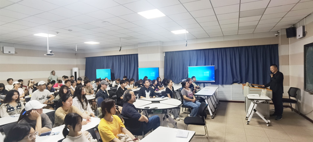 院长李宏文、公共艺术系老师何鹏飞及本科生、研究生共60余人参加讲座,副院长曲国先担任学术主持。