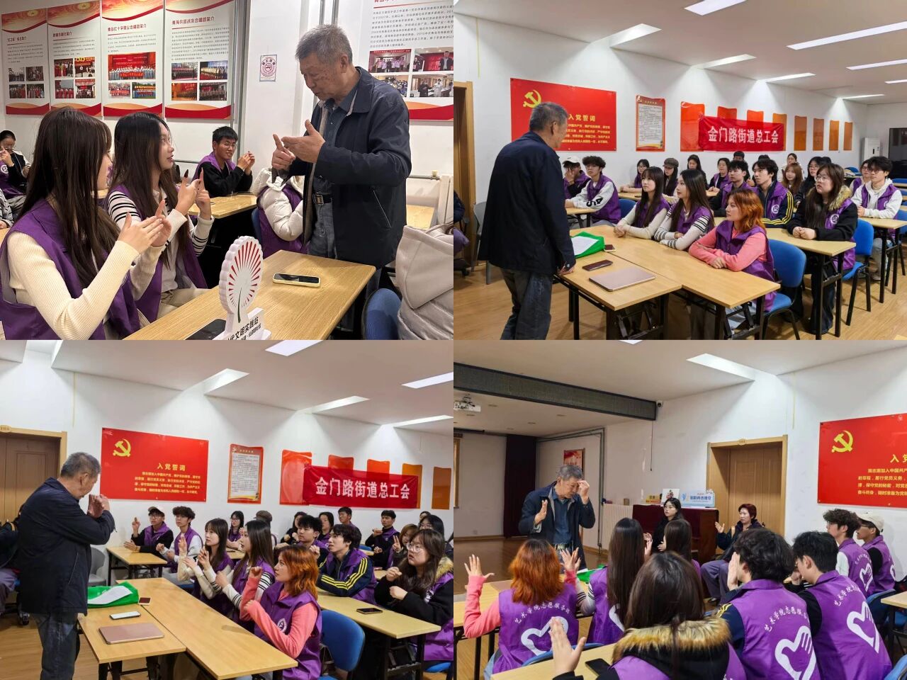 11月15日,国产成人 “艺术姐姐”志愿服务队赴青岛市市南区仙游路社区手语工作室,开展手语学习实践活动,以实际行动传递对残障人士的关爱。
