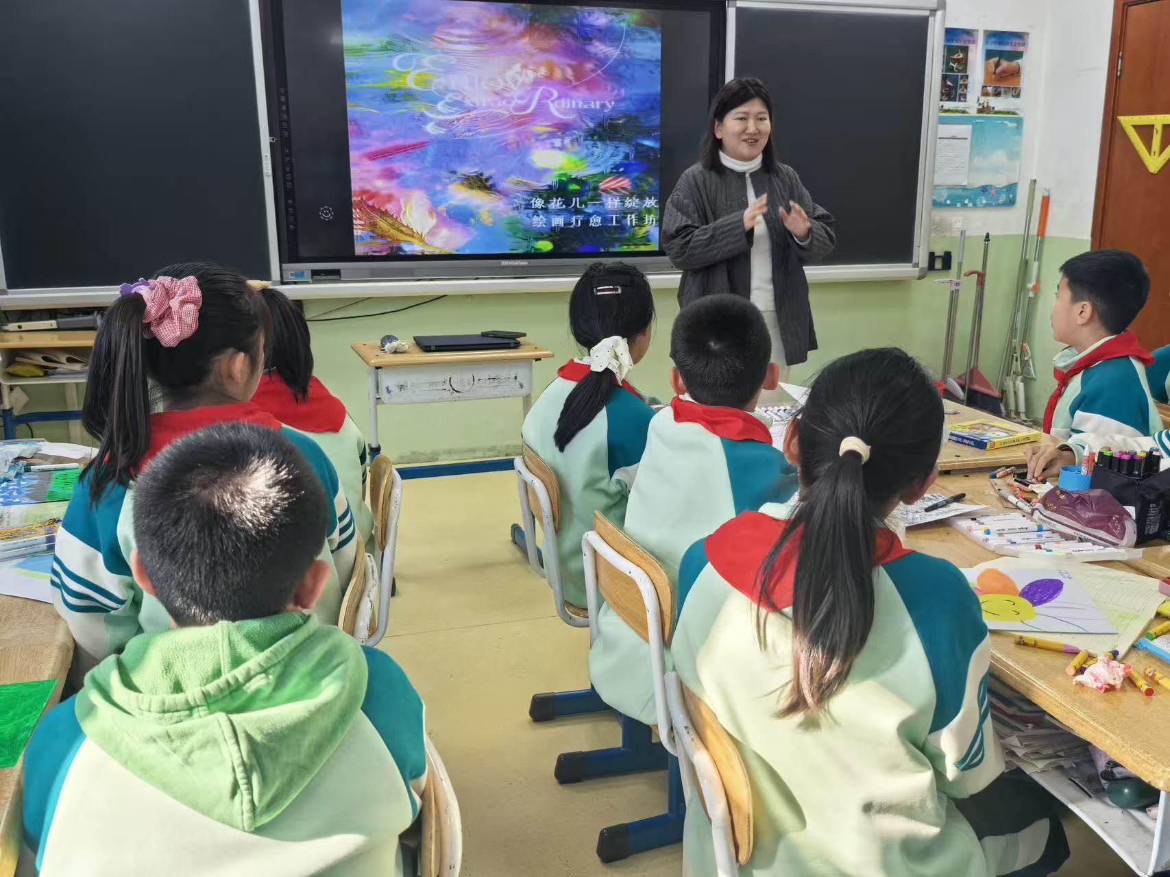 课程包涵暖身放松、主题引导、自由创作、分享整合等四方面内容,以科学疗愈流程层层推进,帮助小学生们在结构化体验中释放情绪、探索自我,课程深度融合专业绘画疗愈规范与小升初学生心理发展特点,既保留了活动的核心流程框架,又针对性融入升学主题与儿童适配设计。