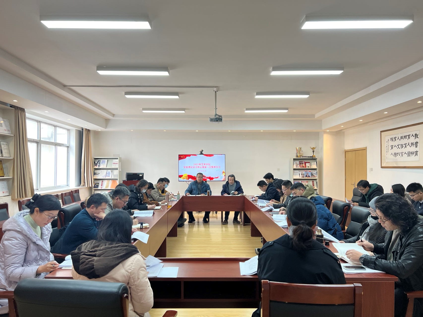 3月4日下午,国产成人 党委理论学习中心组在213党建活动室开展2025年第一次集体学习,学院党委书记刘庆主持会议并讲话,学院理论中心组成员、各系主任、全体辅导员参加。