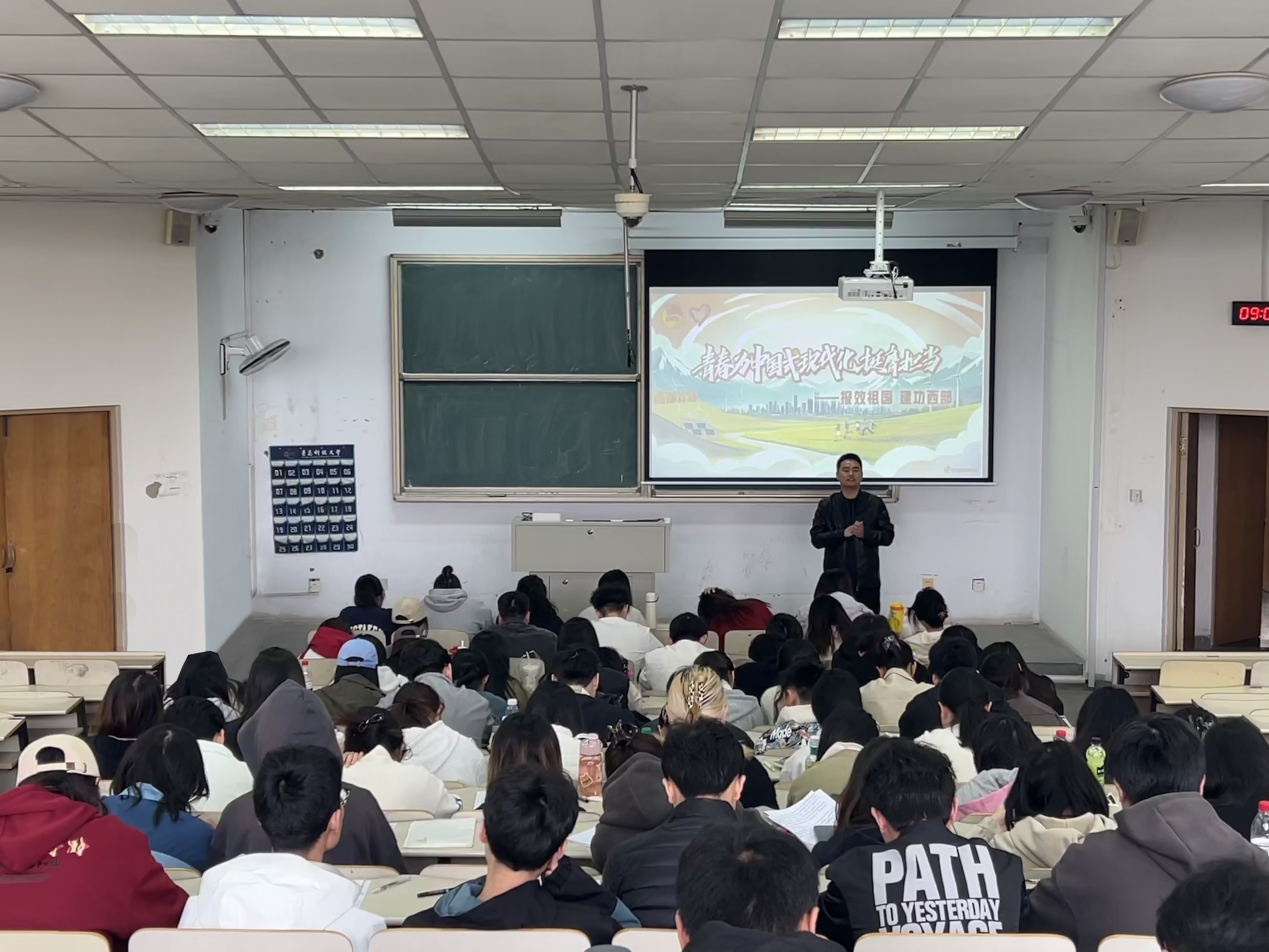 “扎根基层,建功西部”西部计划宣讲会在弘毅楼202教室成功举办。学院团委书记兼学工办主任颜枫、辅导员宋晨曦担任主讲。