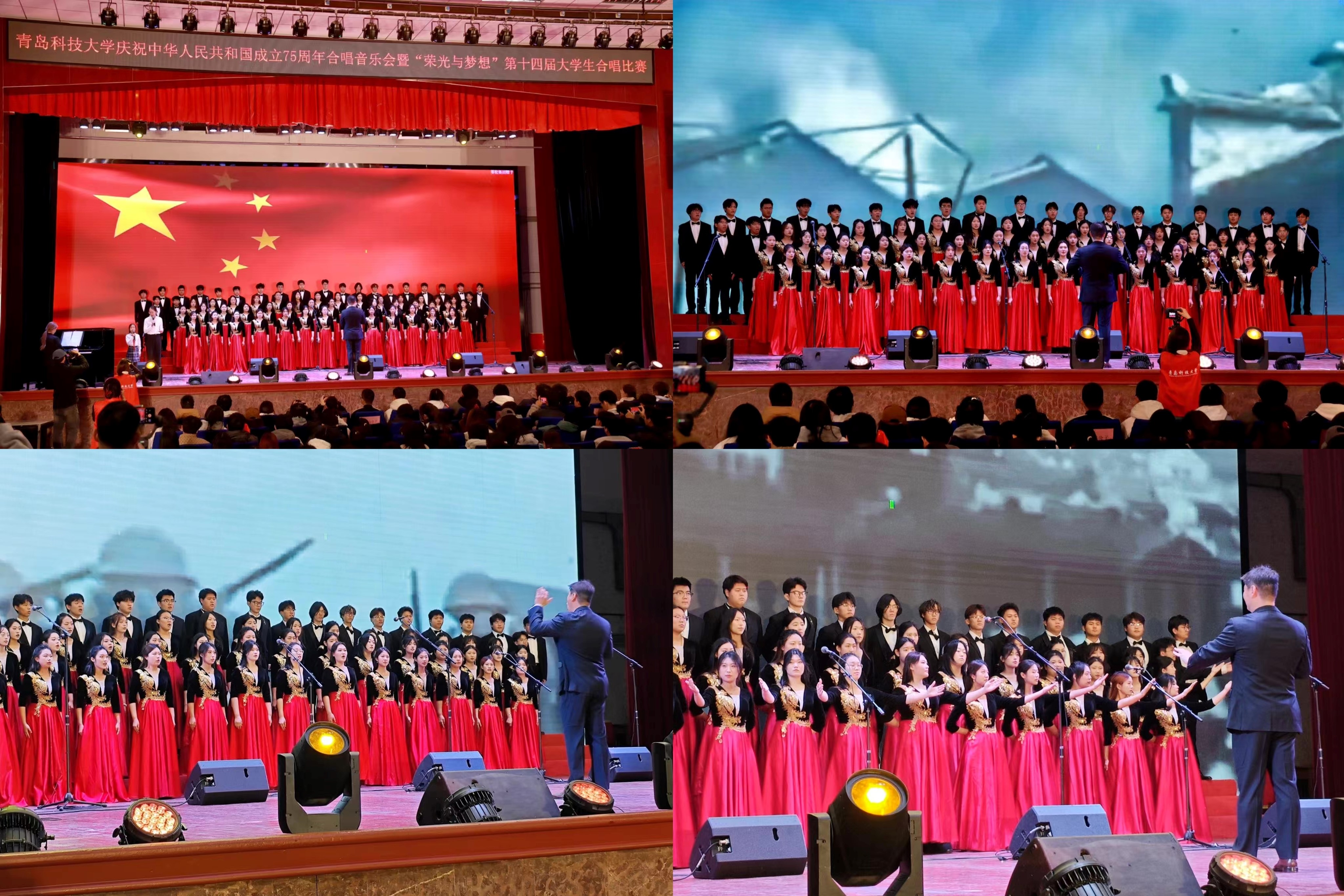 庆祝中华人民共和国成立75周年合唱音乐会暨“荣光与梦想”第十四届大学生合唱比赛决赛在四方校区西礼堂隆重举行。经过激烈角逐,国产成人