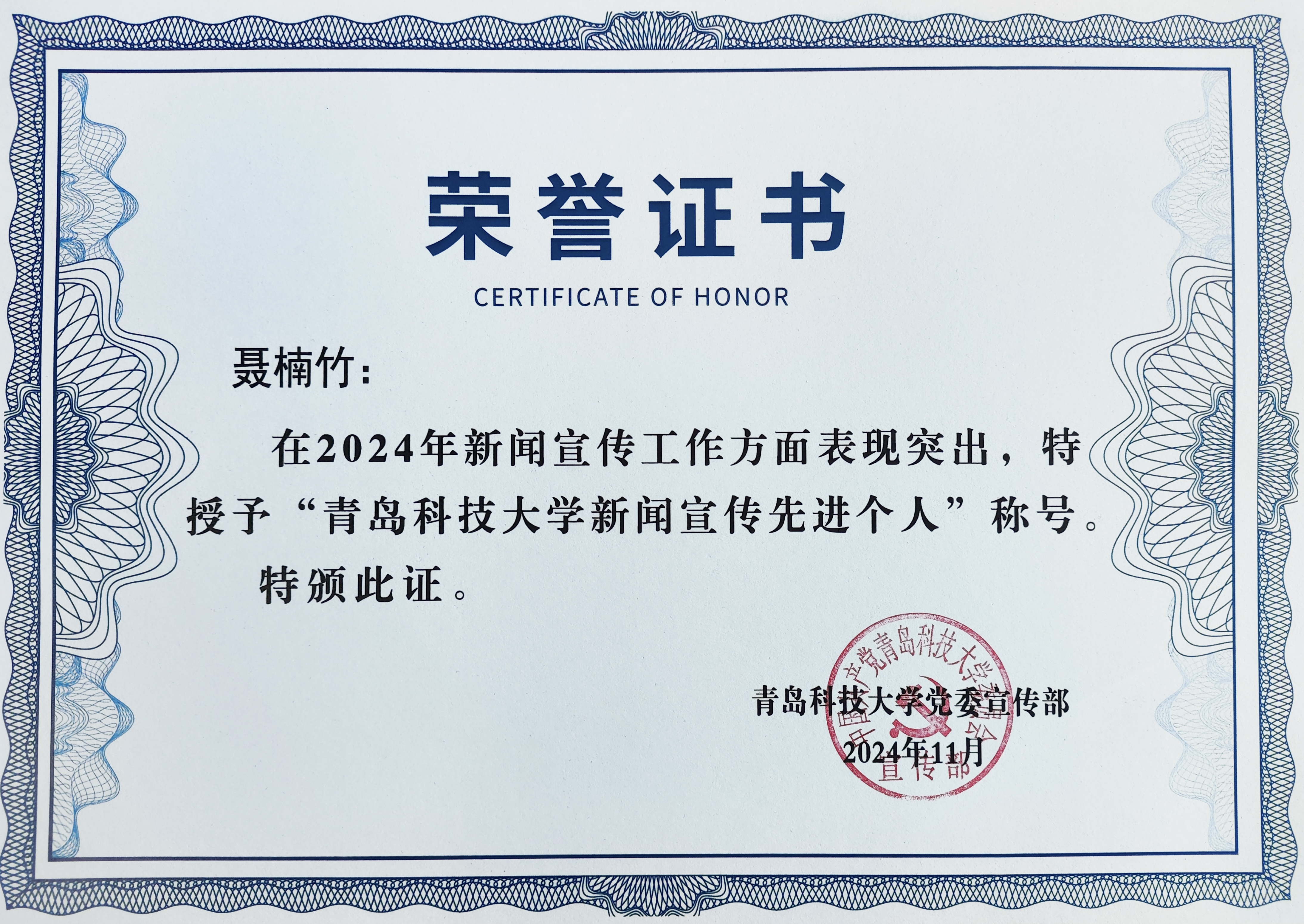 ”荣获优秀微信公众平台、“我和我的系列”优秀组织单位,学院宣传干事聂楠竹获评2024年度新闻宣传先进个人。