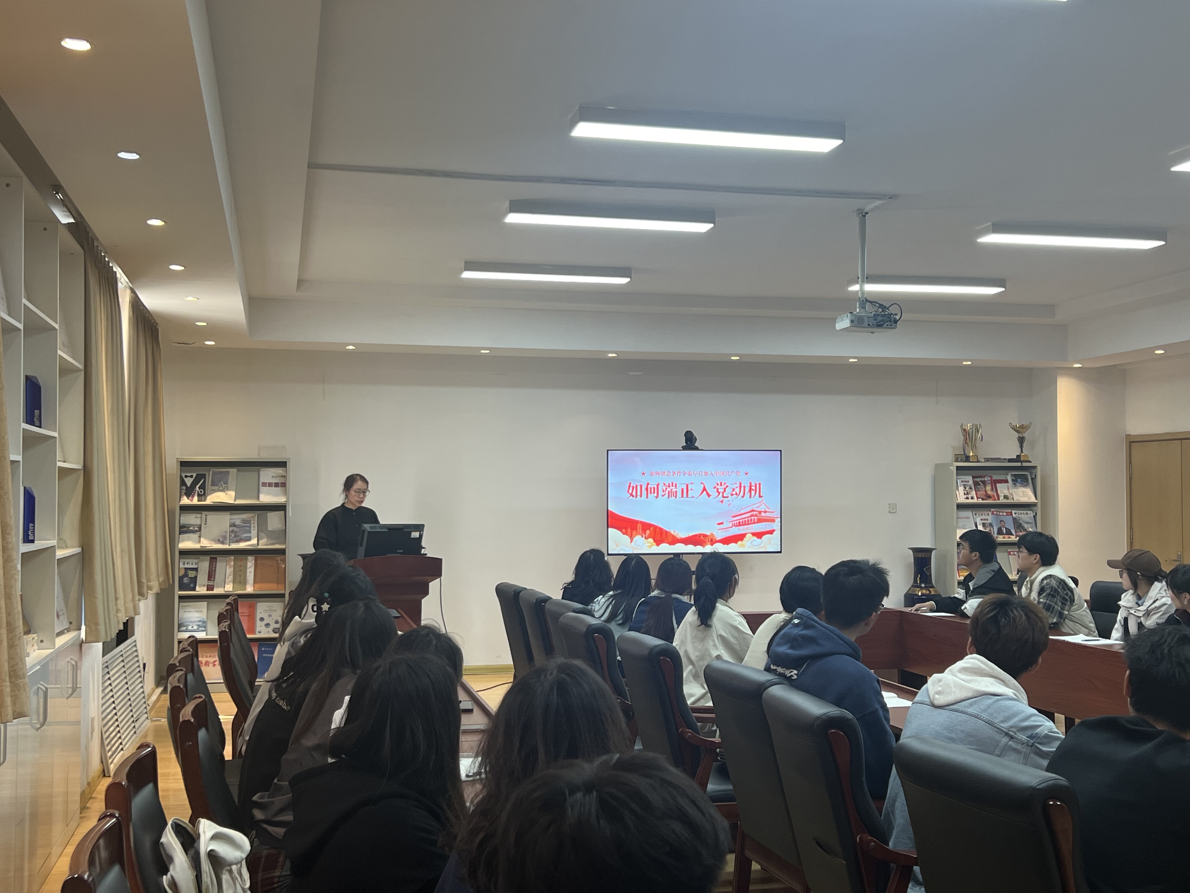 丁一宁以《如何端正入党动机》为题,从中国共产党的三大历史贡献、对党的认识以及党员的权力和义务、树立正确的入党动机、以实际行动争取早日入党四个方面讲解。她强调,组织上入党一生一次,思想上入党一生一世,全体学生要自觉接受党组织教育培养和实践淬炼,实现思想入党与行动入党的有机统一,积极向党组织靠拢。