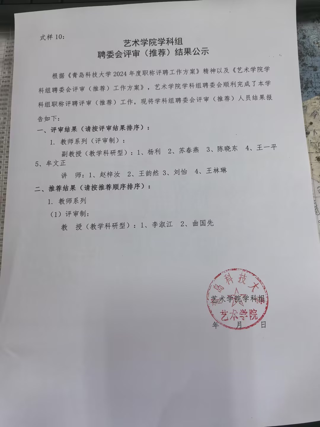 2024职称评审(推荐)结果今天已在企业微信群、学院网站、学院公告栏予以公示,公示期5个工作日,公示期间有问题请反馈邮箱