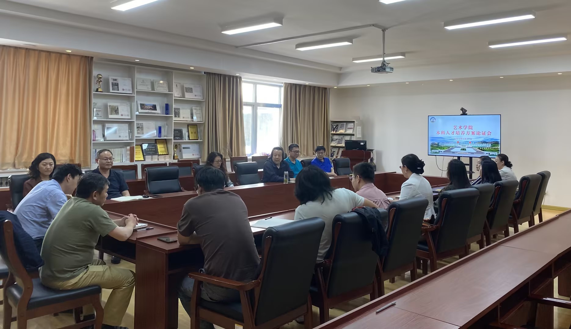 会上,视觉传达系主任袁媛,环境设计系主任张丹,工业设计系主任迟明彬,公共艺术系主任董亮,绘画系副主任黄巍,音乐系主任张燕,分别对本科人才培养方案的前期调研和修改情况进行详细论述。公共艺术系教师臧雪对艺术与科技专业的人才培养方案进行深入讲解。随后,与会教师围绕人才培养方案的制定以及日常教学工作中存在的一些问题展开了热烈的讨论。