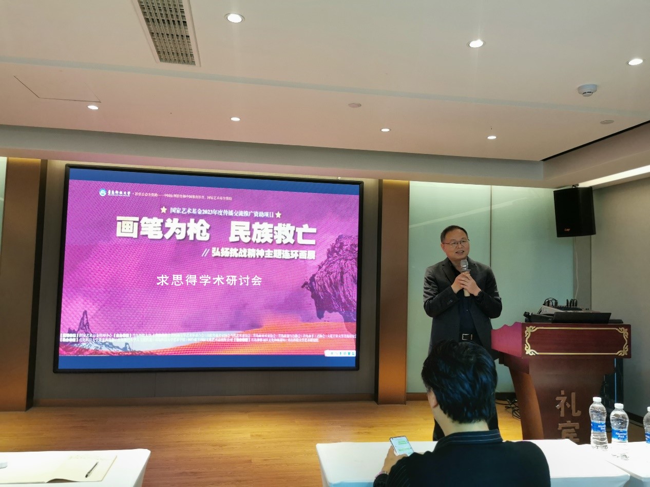 在沃德酒店开展“画笔为枪 民族救亡——弘扬抗战精神主题连环画展”求思得学术研讨会。我院禹青院长及李淑江老师出席并作重要讲话,各年级研究生积极参会。