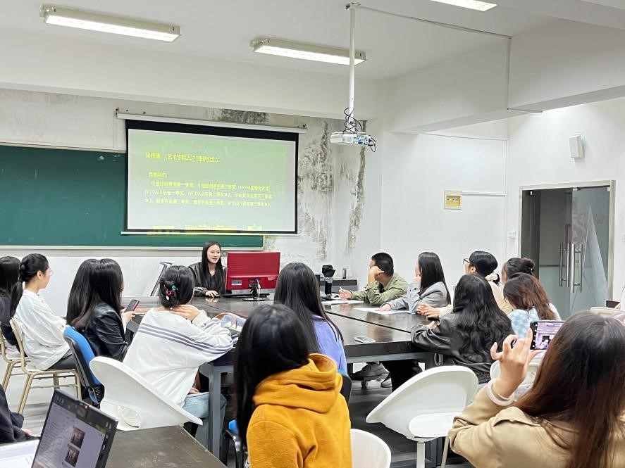 于212室召开“创意无界·竞逐辉煌”求思得论坛暨艺讲堂活动。本次讲座邀请我院聂楠竹老师及23级研究生为大家讲解艺术设计学科竞赛实战经验与启示,会议由研究生于嘉慧主持,各年级研究生积极参会。